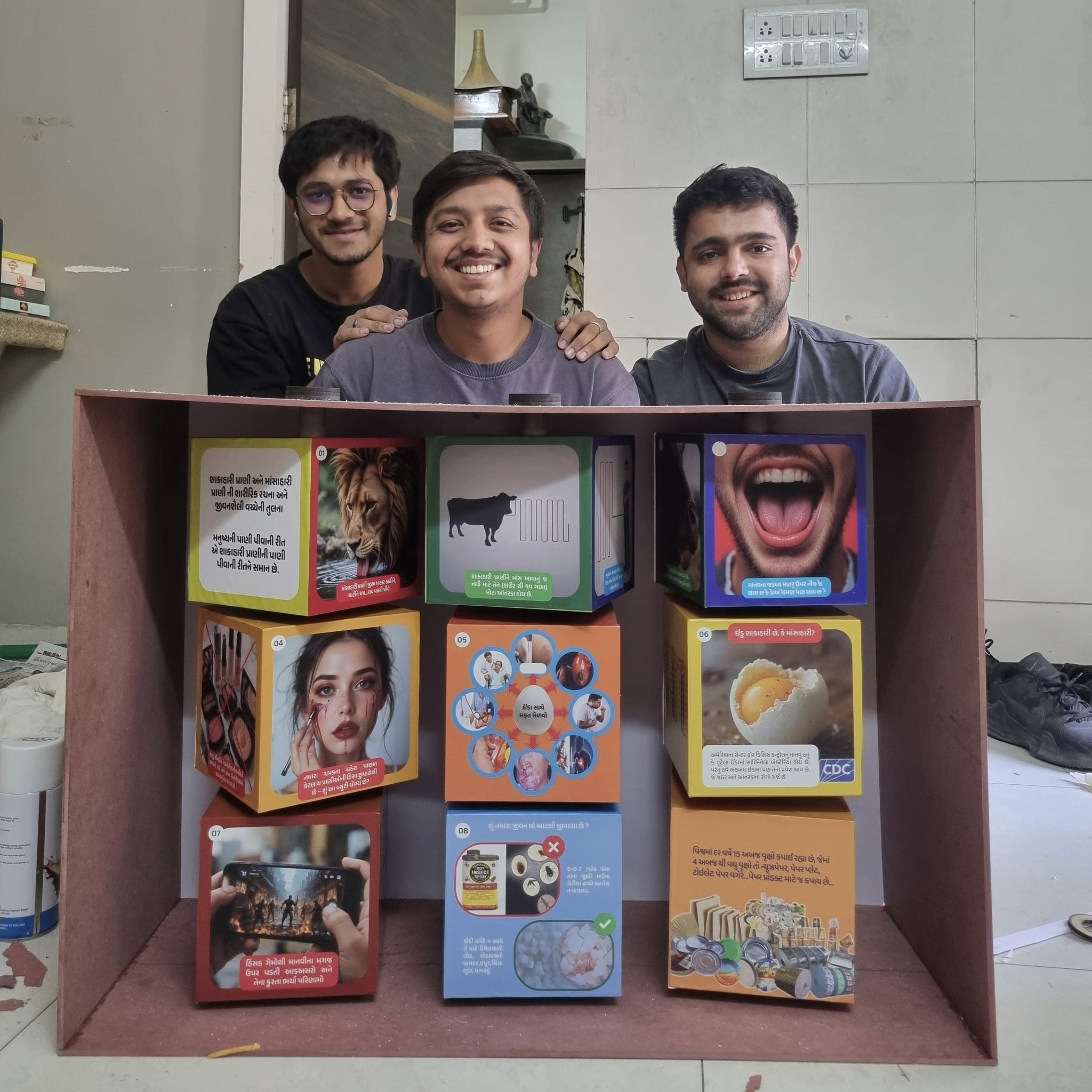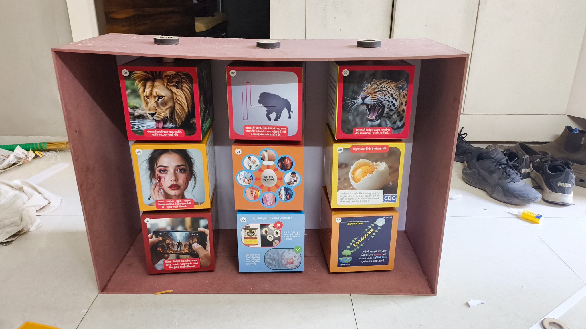 The final product was an engaging and interactive exhibit stand that successfully debuted at a local fair in Ahmedabad, capturing the attention of over 2,000 visitors.